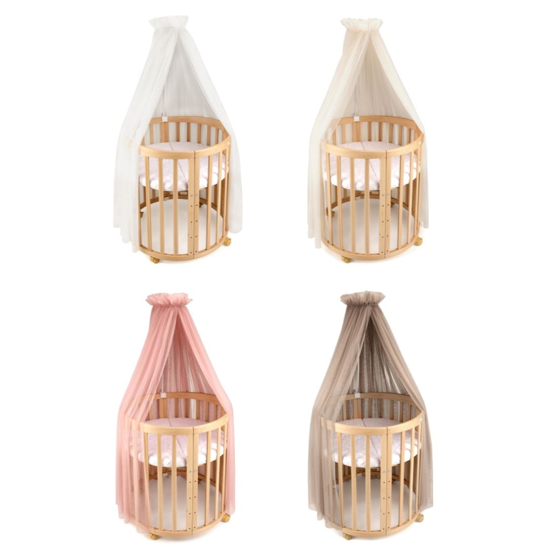Ciekawą ozdobą będzie baldachim tiulowy, który w zestawie zawiera odpowiednią podporę - nie musisz się martwić o to jak zamontować baldachim nad łóżeczkiem. Do wyboru jest kilka kolorów z miękkiego tiulu (45 g/m2). Baldachim ma rozmiar 700 x 155 cm.
