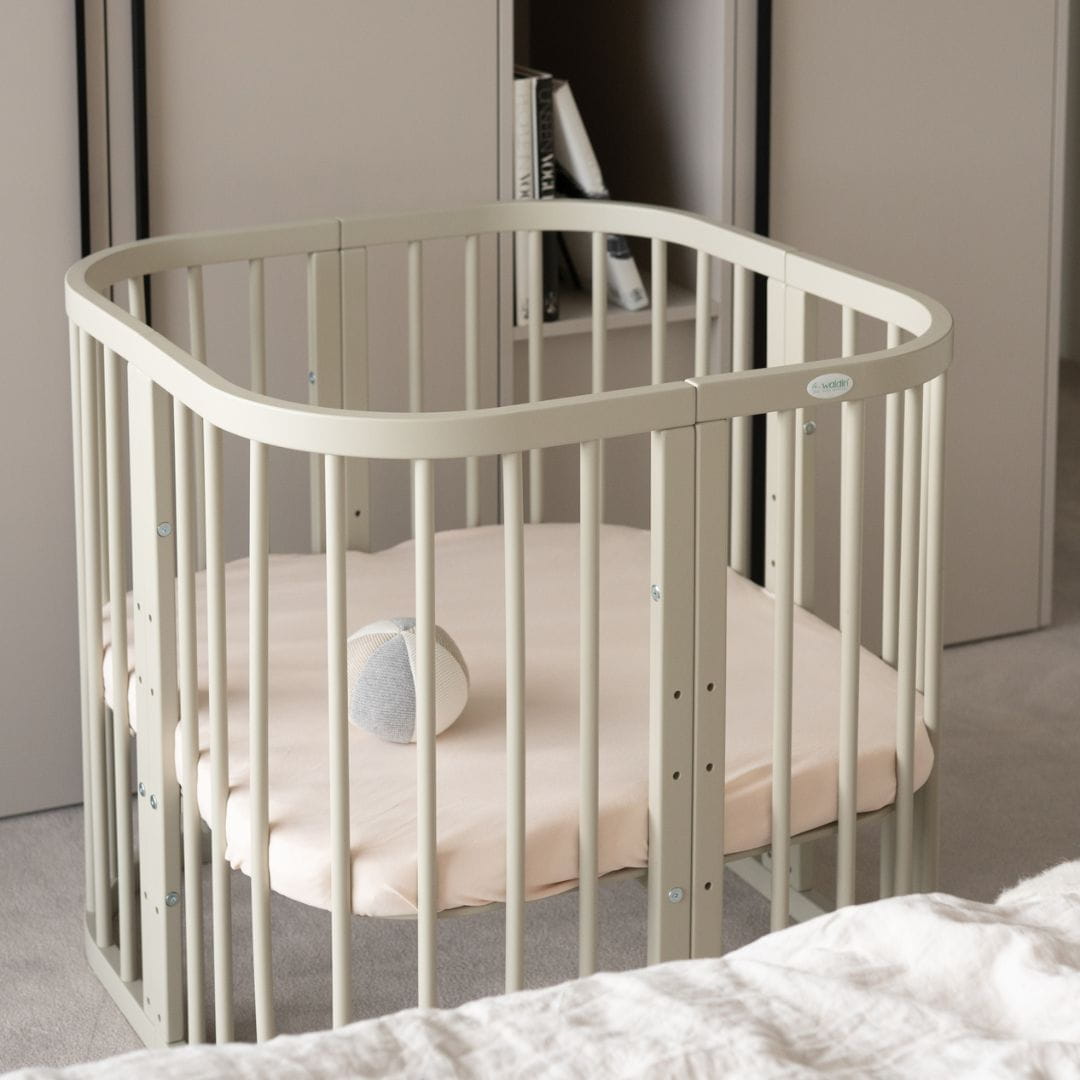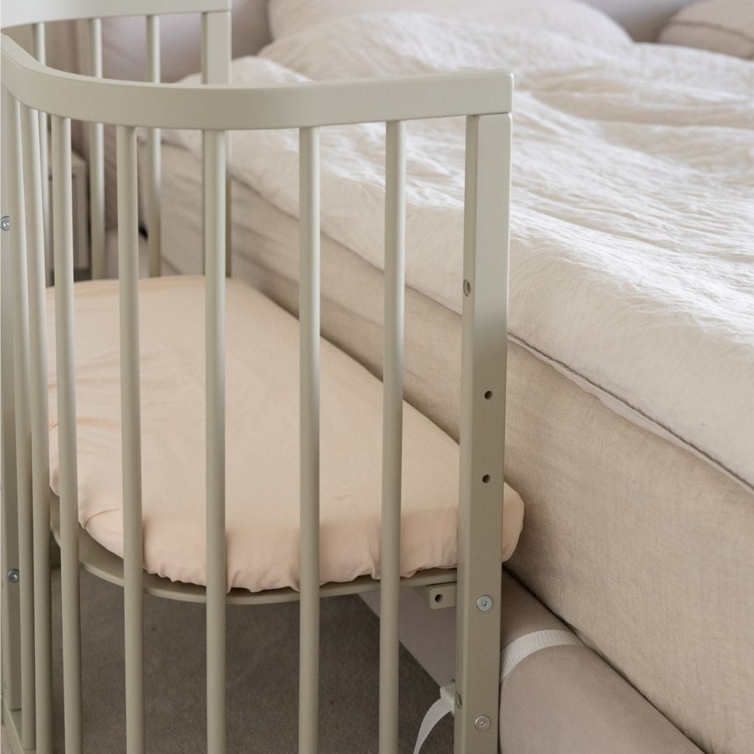 Istnieje możliwość dokupienia zestawu dwóch prześcieradeł pasujących na małą i dużą konfigurację łóżeczka 7w1 (prześcieradła jersey z gumką o rozmiarach: małe - 73x73 cm, duże - 73x122 cm) oraz prześcieradło do przystawki w rozmiarze 90x60 cm.