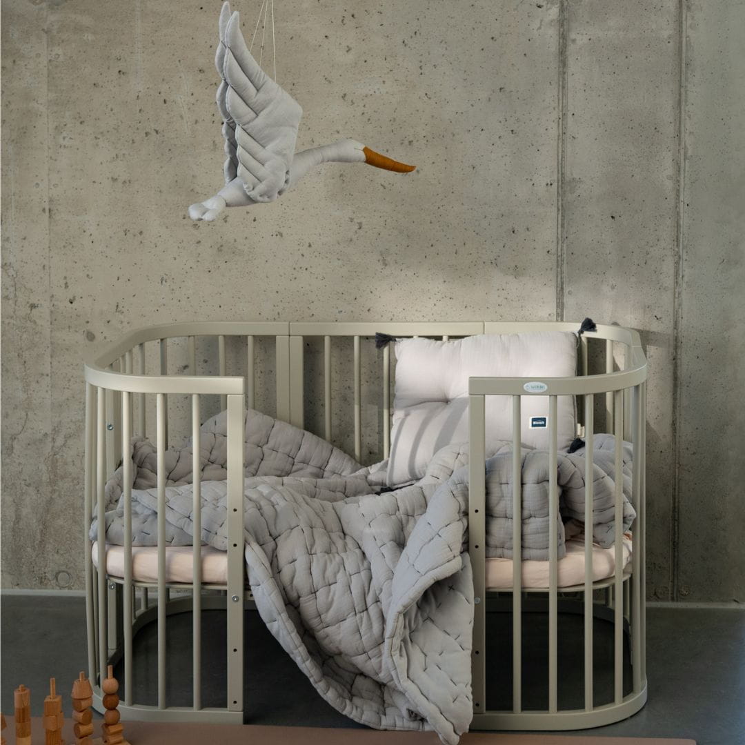 Jeśli chcesz przekształcić łóżeczko w kołyskę, wybierz taką opcję dodatkową. Elegancka konstrukcja z mechanizmem huśtawkowym z drewna bukowego i łatwym mocowaniem do łóżeczka 7w1. Kołyskę można zablokować, aby korzystać z łóżeczka w stabilnych warunkach. Wahadło blokujące można bez problemu przestawić poprzez przechylenie nogą lub ręką.