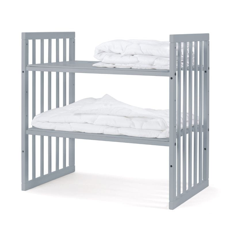 Mebelek może być wykorzystywany także jako małe łóżeczko. Najważniejsze zalety tej konfiguracji to kompaktowe wymiary i mobilność. Przymocowane do podstawy łóżeczka gumowane kółka pozwalają na jego przesuwanie, zostały wyposażone w blokadę. Z reszty drewnianych elementów stworzycie funkcjonalny przewijak z dodatkową półką, który ułatwi codzienną pielęgnację malucha.