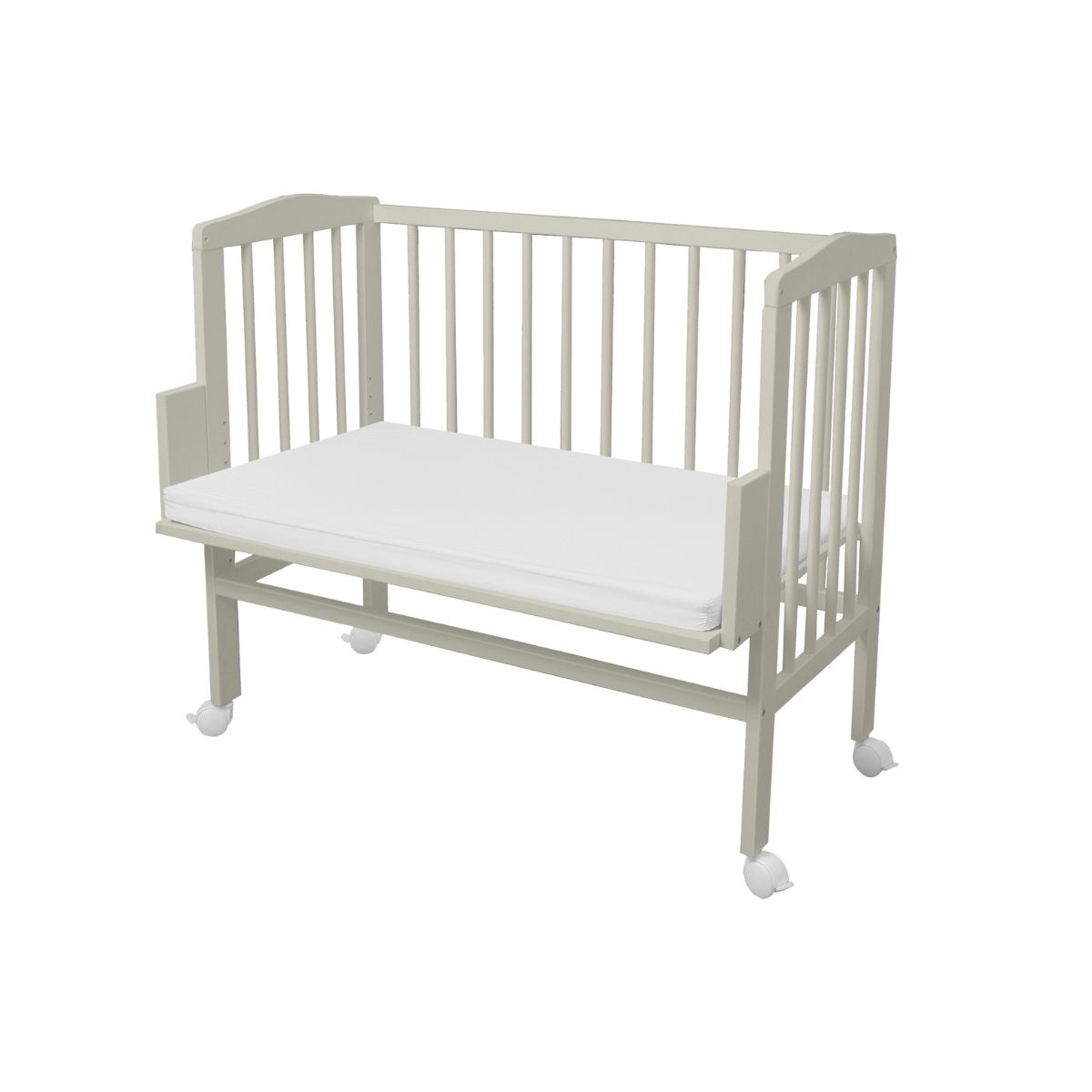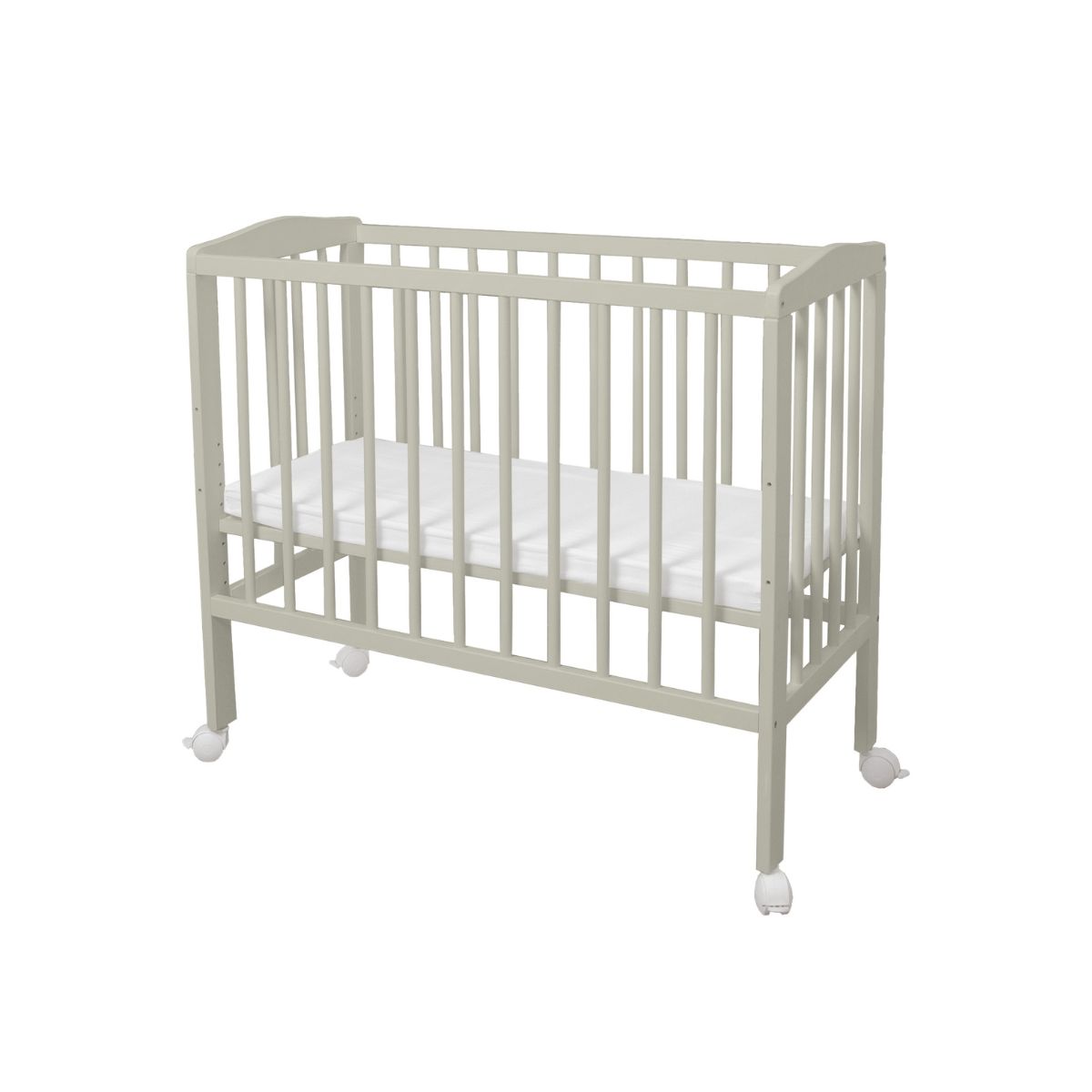 Model wyposażony jest w kółka z blokadą, dzięki czemu możesz łatwo przestawić łóżeczko w dowolne miejsce.
