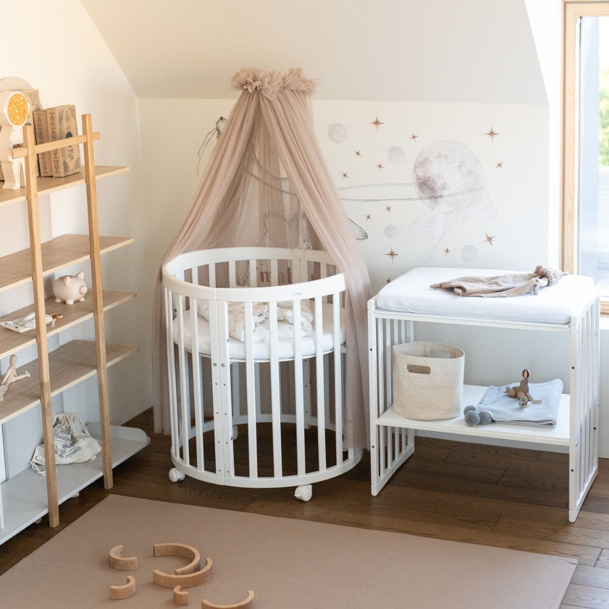 W pierwszych chwilach życia malucha łóżeczko może pełnić rolę dostawki, dzięki czemu będziesz przy nim blisko przez cały czas. Regulowana wysokość dostawki pozwala z łatwością dopasować ją do każdego łóżka, co ułatwia bliski kontakt z dzieckiem przez całą noc. Podstawowa konfiguracja umożliwia też stworzenie łóżeczka dla niemowlaka oraz praktycznego przewijaka, co z pewnością przyda się w każdej sypialni młodego rodzica.