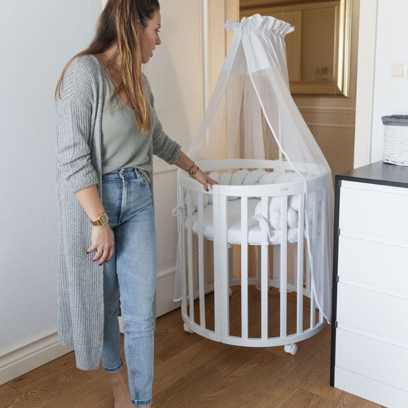 Jeśli chcesz przekształcić łóżeczko w kołyskę, wybierz taką opcję dodatkową. Elegancka konstrukcja z mechanizmem huśtawkowym z drewna bukowego i łatwym mocowaniem do łóżeczka 7w1. Kołyskę można zablokować, aby korzystać z łóżeczka w stabilnych warunkach. Wahadło blokujące można bez problemu przestawić poprzez przechylenie nogą lub ręką.
