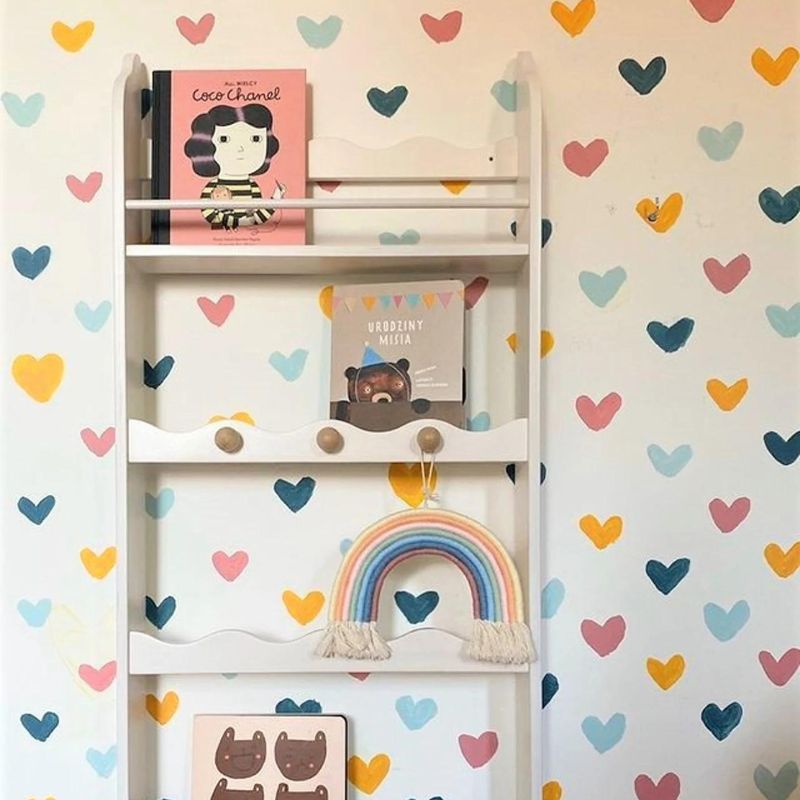 Półeczka na książki zawiera 4 przegródki oraz dodatkowo trzy wieszaczki w kolorze naturalnym. Półeczka ma urocze wykończenia z falbanką, które dodają jej niesamowitego uroku. Regały są również piękną ozdobą pokoju, idealne do niewielkich przestrzeni.