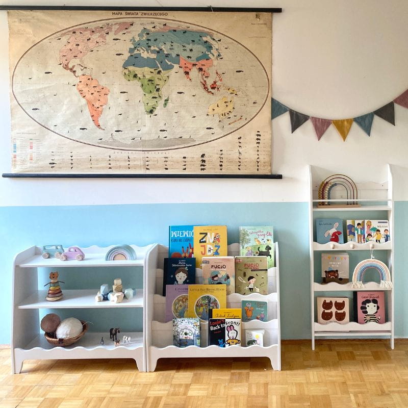 Półka na książki do pokoju dziecka - meble Montessori dla najmłodszych