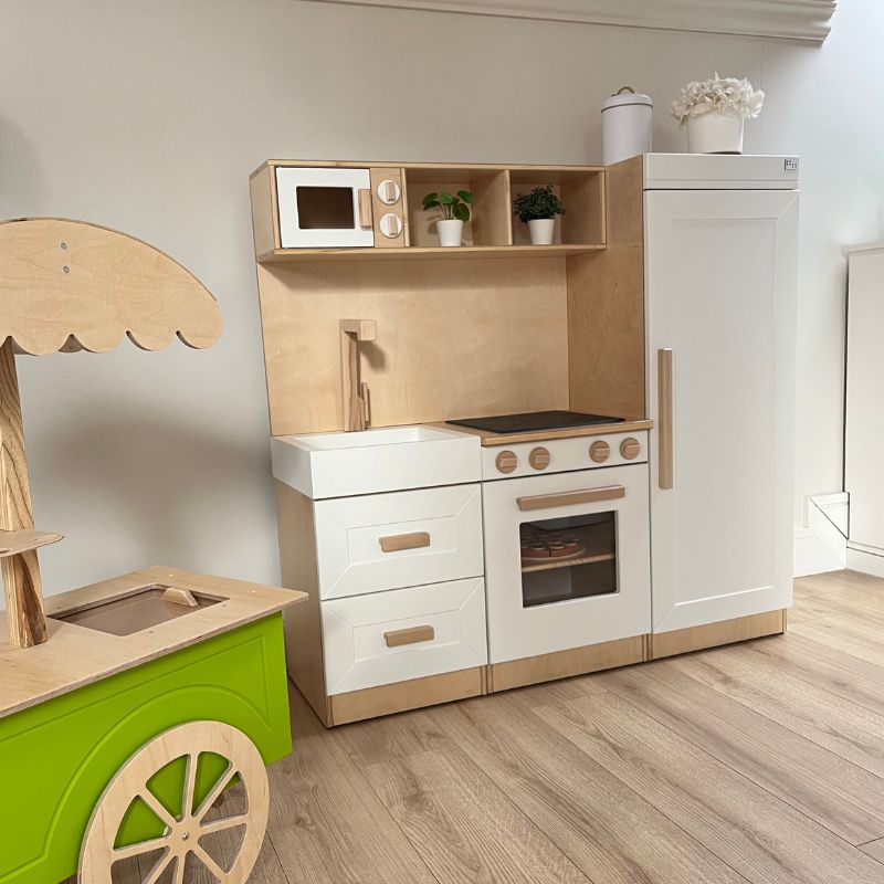 Dzięki uniwersalnemu designowi i stonowanej kolorystyce kuchnia doskonale odnajdzie się w nowoczesnych wnętrzach, stając się nie tylko ulubioną zabawką, ale również estetycznym elementem wystroju.