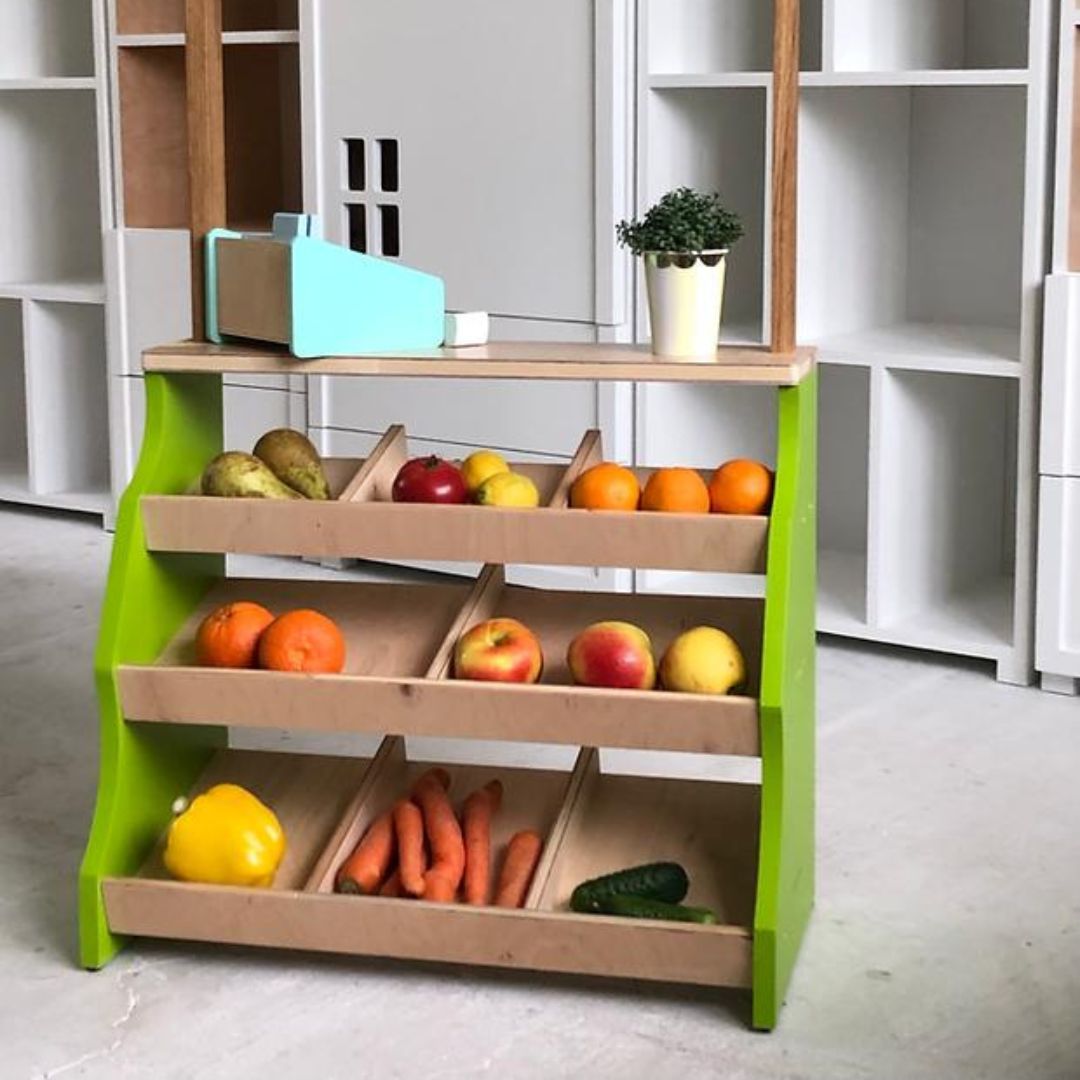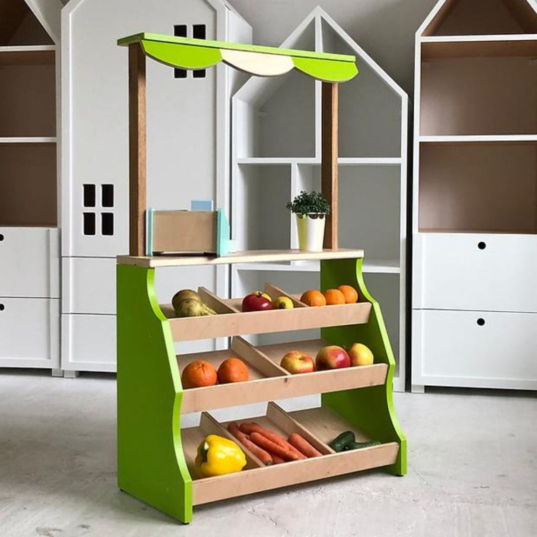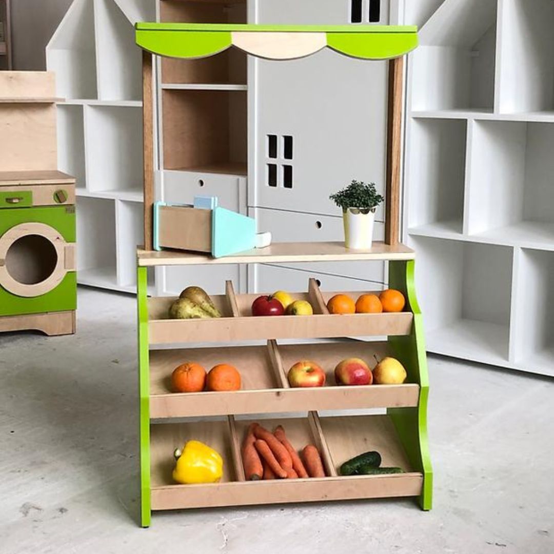 Drewniany stragan do zabawy - zabawka w duchu Montessori