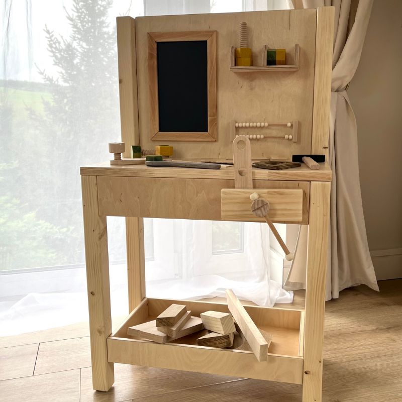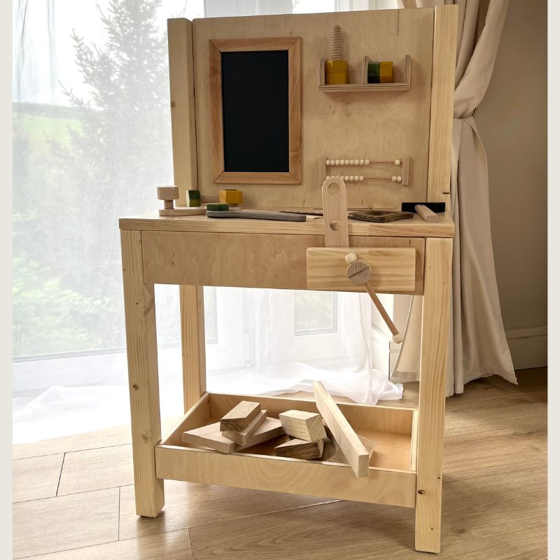 Warsztat został zaprojektowany tak, aby wspierać rozwój samodzielności, zdolności manualnych, logicznego myślenia oraz kreatywności. Inspirowany filozofią Montessori, zachęca dziecko do nauki poprzez doświadczenie i aktywne działanie.