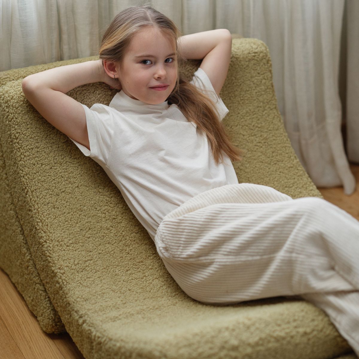 Piankowe siedzisko Wigiwama zapewnia maksymalny komfort i wsparcie, a miękka tkanina teddy gwarantuje ciepło i przyjemne doznania dotykowe. Jest to doskonałe miejsce do czytania, oglądania telewizji lub relaksu, które łączy wygodę z estetyką. Dzięki przemyślanemu projektowi, składającemu się z trzech oddzielnych elementów, puf oferuje nie tylko komfort, ale również angażujące doświadczenie budowania i zabawy dla dzieci. Taki design sprawia, że mebel może być interaktywną częścią zabawy, zachęcając do kreatywności.