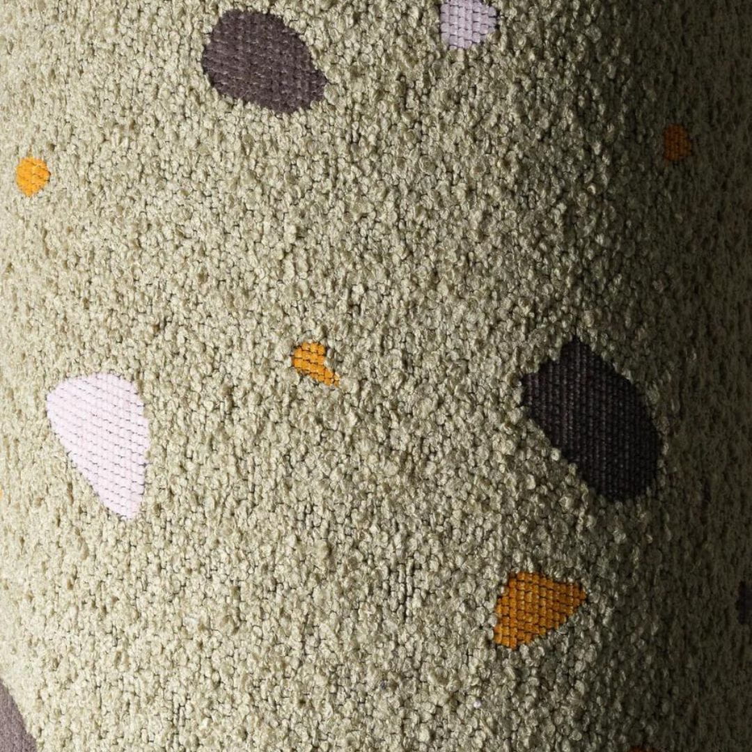 Pufa o wzorze terrazzo to wyjątkowy element wystroju, który idealnie sprawdzi się w pokoju dziecięcym. Jej miękka, przyjemna w dotyku powierzchnia wykonana z materiału o strukturalnym splocie boucle zapewnia komfort użytkowania. Utrzymana w delikatnym zielonym odcieniu z kolorowymi akcentami inspirowanymi wzorem terrazzo, pufa wprowadza nowoczesny i przytulny akcent do każdego wnętrza.