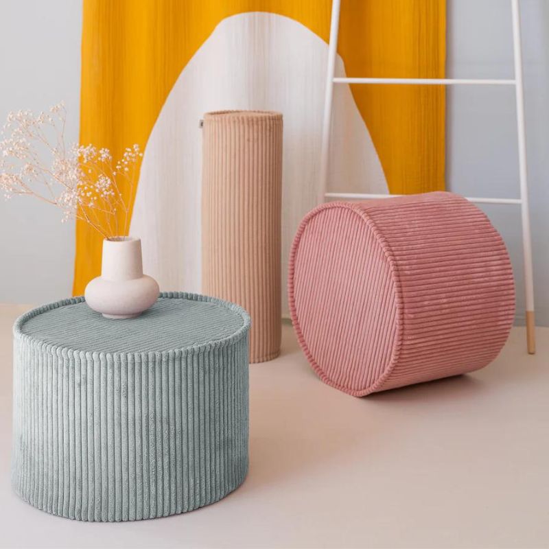 Pufa dla dzieci wykonana jest z wysokiej jakości, grubej tkaniny sztruksowej z certyfikatami OEKO-TEX® i GRS®, który jest produkowany z przetworzonych butelek PET. Miękki sztruks zapewnia niezapomniane wrażenia dotykowe dzięki luksusowej fakturze.