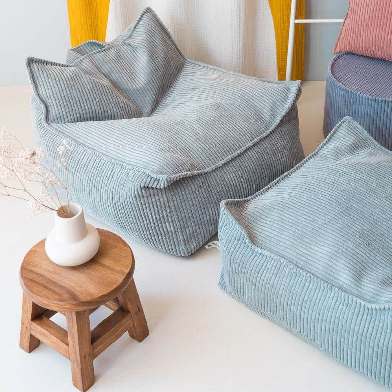 Sztruksowe miętowe siedzisko dla dziecka to stylowy i praktyczny dodatek do każdego wnętrza. Puf można zastosować na wiele sposobów - jako podnóżek lub dodatkowe miejsce do siedzenia.