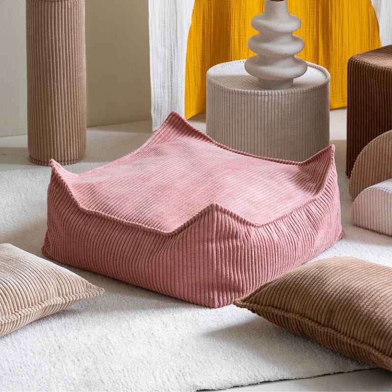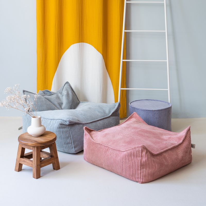 Pufa dla dzieci wykonana jest z wysokiej jakości, grubej tkaniny sztruksowej z certyfikatami OEKO-TEX® i GRS®, który jest produkowany z przetworzonych butelek PET. Miękki sztruks zapewnia niezapomniane wrażenia dotykowe dzięki luksusowej fakturze.