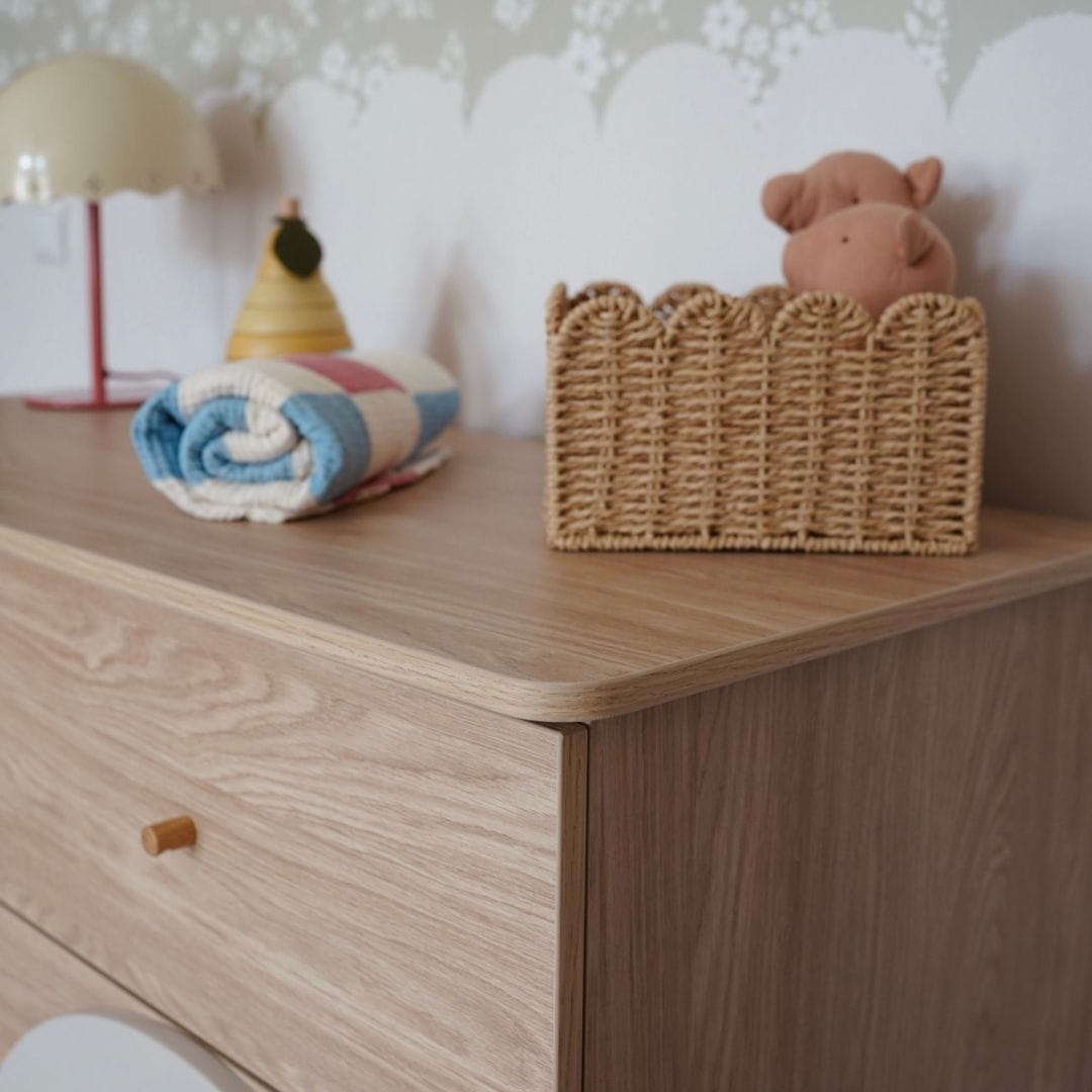 Kolekcja dostępna jest w kolorze kaszmiru i dębu - idealne połączenie elegancji i naturalnego piękna. Te subtelne i stylowe barwy wprowadzą do pokoju dziecka atmosferę spokoju i ciepła, tworząc przytulne i inspirujące miejsce do zabawy, nauki i odpoczynku.