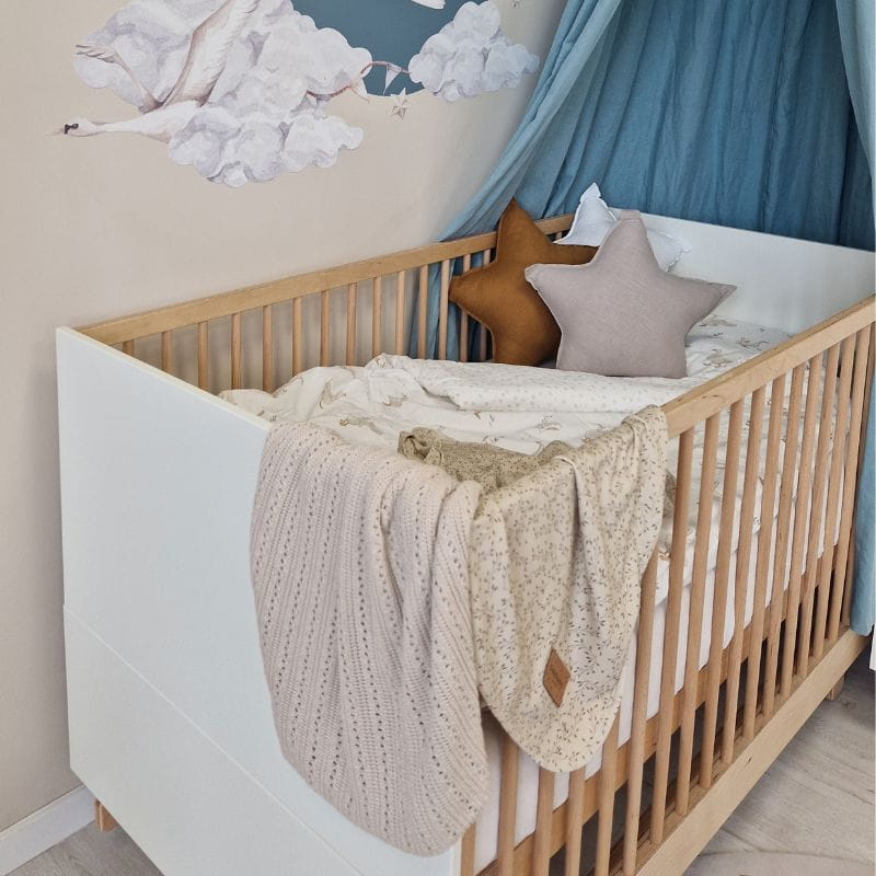 Łóżeczko dziecięce wyposażone jest w dodatkowe listwy boczne, które umożliwiają konwersję najpierw na sofę, a później na łóżeczko dla starszego dziecka. Zabezpieczają one również dziecko przed wypadaniem.