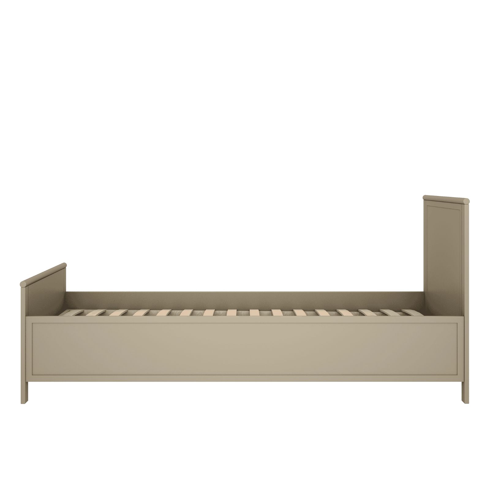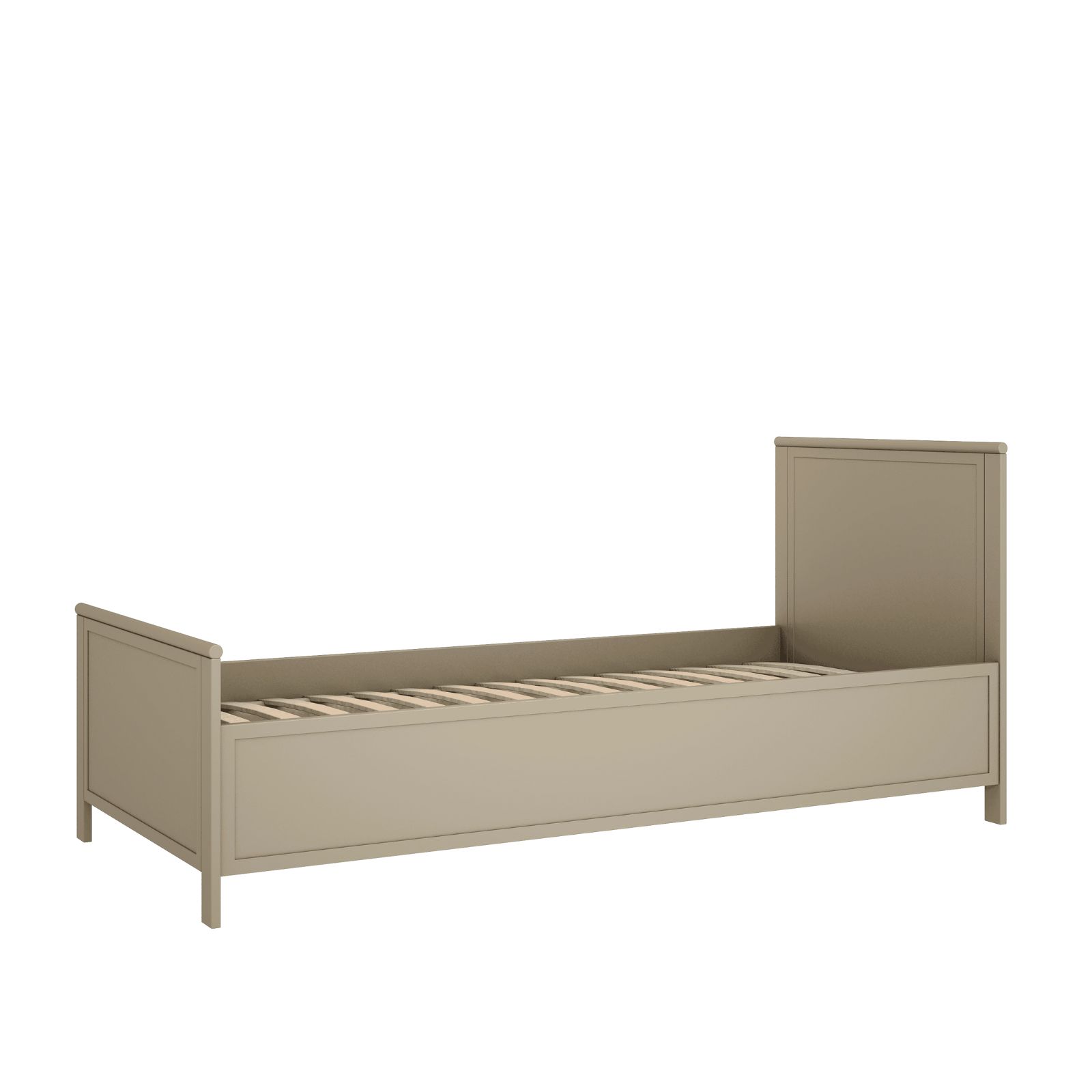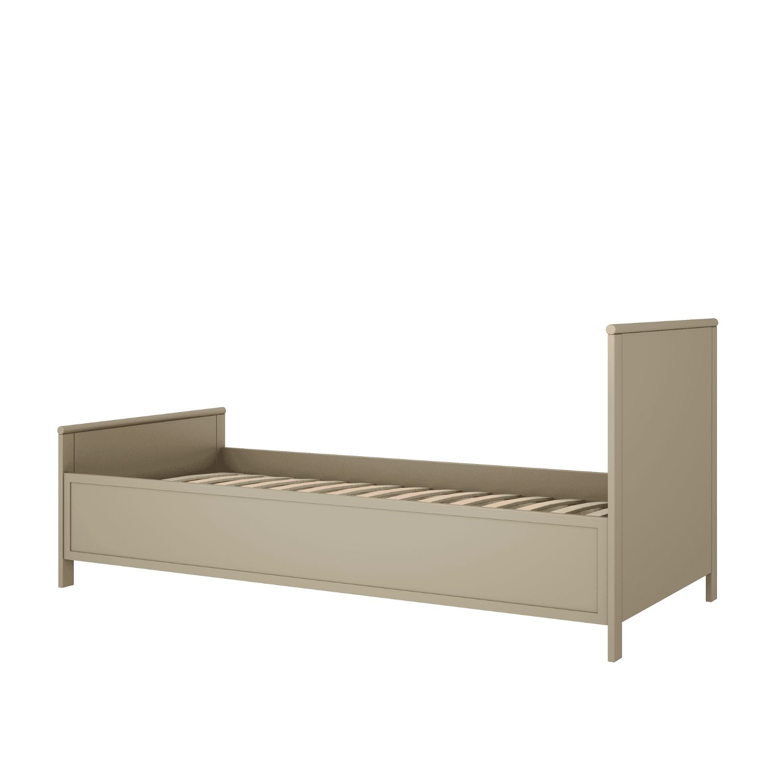 Łóżko pasuje do materaca o wymiarach 90×200 cm i doskonale sprawdzi się jako komfortowe miejsce do snu oraz codziennego wypoczynku. Klasyczna forma sprawia, że mebel łatwo dopasować do różnych aranżacji – od vintage, przez boho, po nowoczesne wnętrza młodzieżowe.