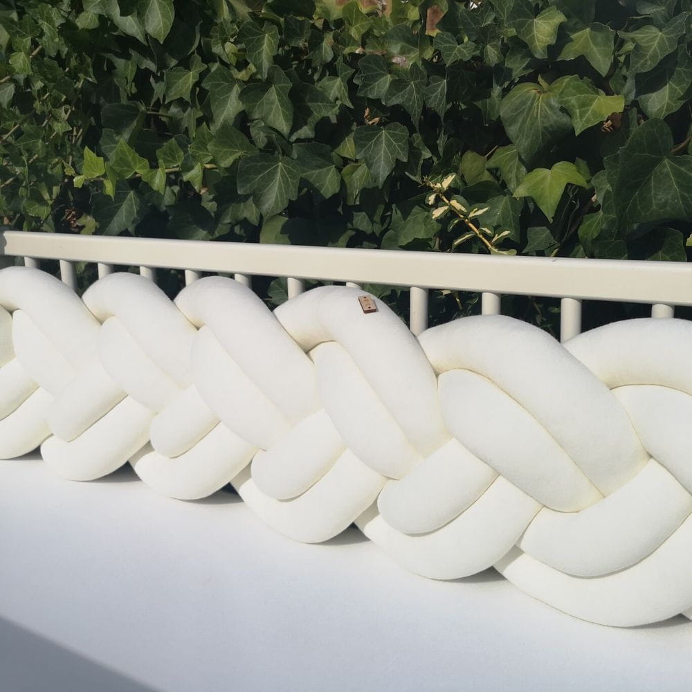Super miękki, pleciony ochraniacz do łóżeczka niemowlęcego lub dziecięcego. Wykonany w 100% ręcznie w Polsce z dbałością o szczegóły. Poszewka z oddychającej i elastycznej dzianiny, antyalergiczne silikonowe wypełnienie. Wszystkie materiały posiadają certyfikat bezpieczeństwa Standard 100 by OEKO-TEX®