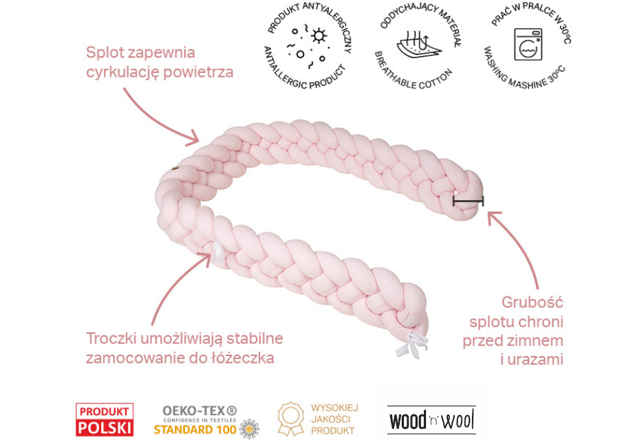Ochraniacz warkocz do łóżeczka Wood&Wool - doskonała ochrona Twojego dziecka