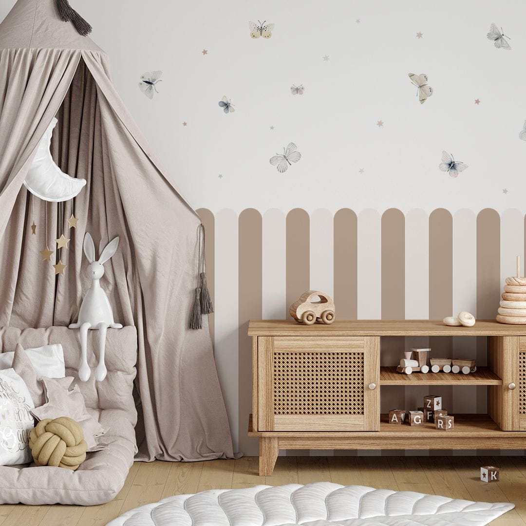 Naklejki na ścianę w formie lamperii to funkcjonalny i estetyczny sposób na wzbogacenie wnętrza pokoju dziecka. Dzięki nim można łatwo i szybko zmieniać wygląd pokoju, dodając mu charakteru i chroniąc jednocześnie ściany przed uszkodzeniami.