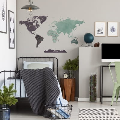 Jeżeli w Twoim domu mieszka mały miłośnik podróży z duszą odkrywcy to naklejka na ścianę mapa świata będzie idealnym rozwiązaniem na aranżację wnętrza :) Naklejka na ścianę to prosty i szybki sposób na metamorfozę dziecięcego pokoju. Jeśli więc szukasz pomysłu na odświeżenie lub zastanawiasz się jak urządzić pokój dla dziecka - sprawdź naklejki na ścianę z motywem mapy.