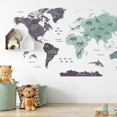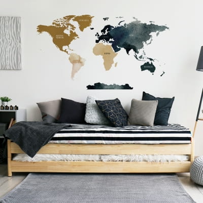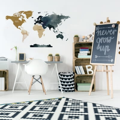 Jeżeli w Twoim domu mieszka jakiś miłośnik podróży z duszą odkrywcy to naklejka Mapa świata będzie idealnym rozwiązaniem na aranżację wnętrza :) Naklejka na ścianę Mapa świata to niebanalny element dekoracyjny i jednocześnie edukacyjny! Mapa świata uczy, inspiruje do rozwoju i pobudza kreatywność Twojego dziecka.