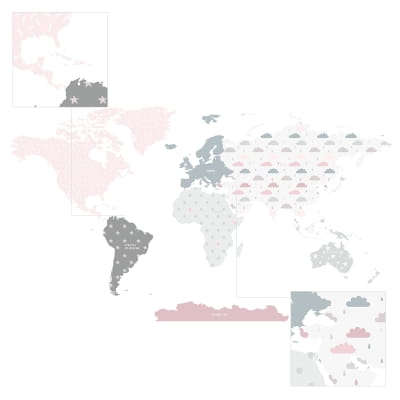 Różowa naklejka na ścianę Mapa świata - idealna do pokoju dziewczynki
