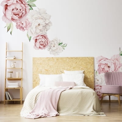 Drukowane naklejki na ścianę pastelowe piwonie wycinane z folii matowej to świetne rozwiązanie jako zamiennik tapety.