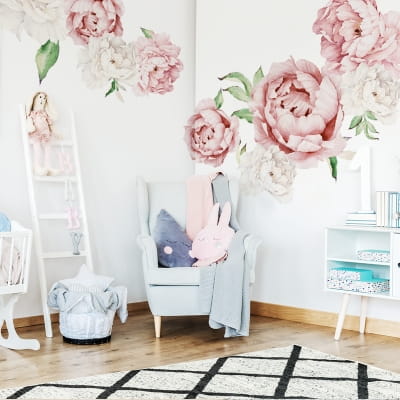Naklejki na ścianę do pokoju dziewczynki to nie tylko niskobudżetowy projekt, ale również oryginalny sposób na widoczną zmianę wizerunkową pokoju dziecka. Samodzielnie, w łatwy i szybki sposób zaprojektujesz wystrój ścian na miarę oczekiwań i potrzeb Twojego dziecka. Dzięki samodzielnej kompozycji zyskujesz niezliczoną ilość możliwości aranżacyjnych. Naklejkę na ścianę można dowolnie przyciąć - listki rozciąć, dopasować do kwiatów lub najpierw nakleić listki później piwonie.