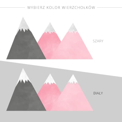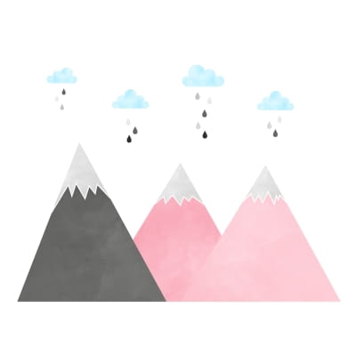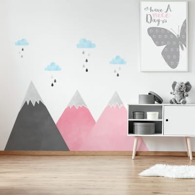 Naklejki na ścianę z motywem różowych gór oraz chmurek w wybranym kolorze to świetna propozycja do pokoju niemowlaka oraz przedszkolaka.