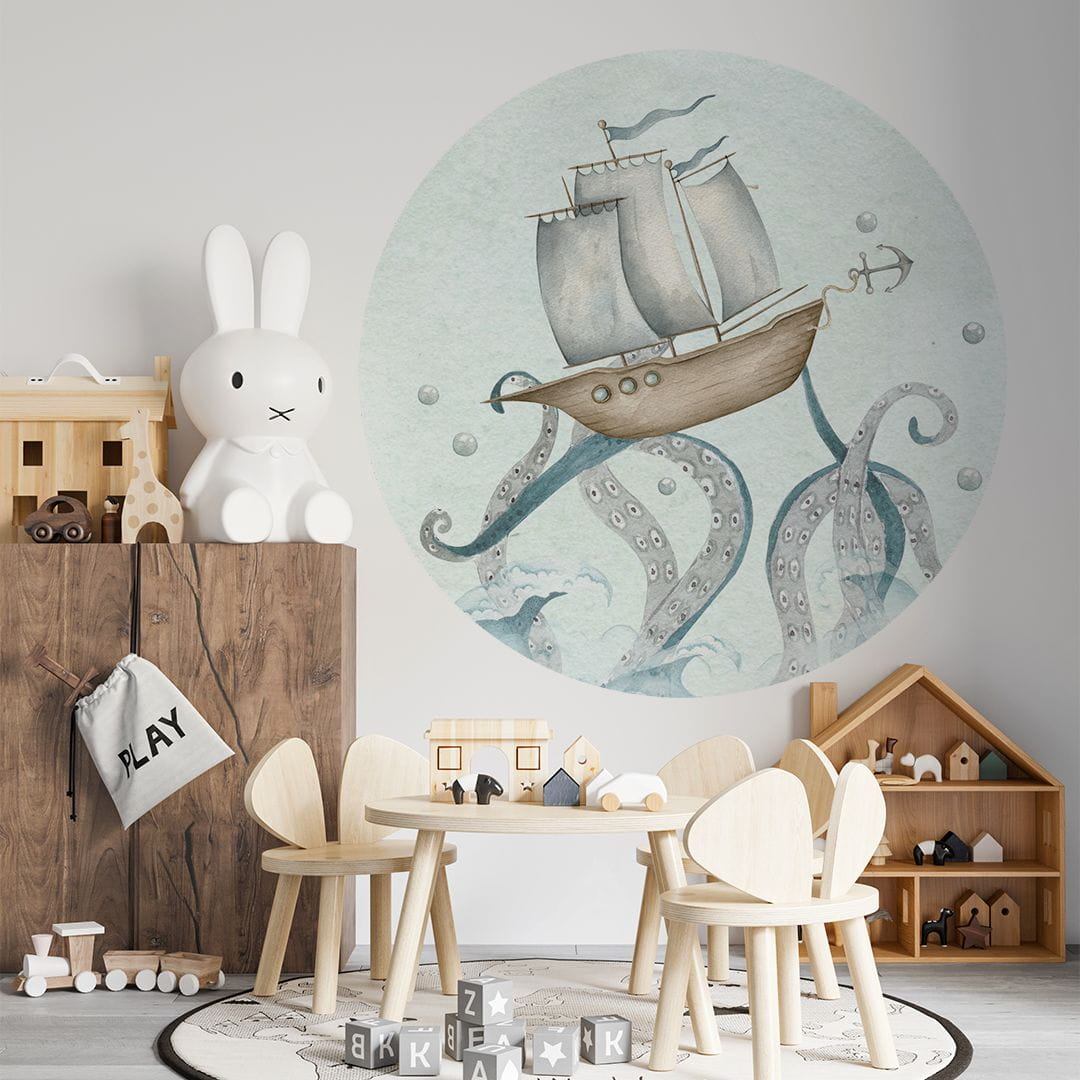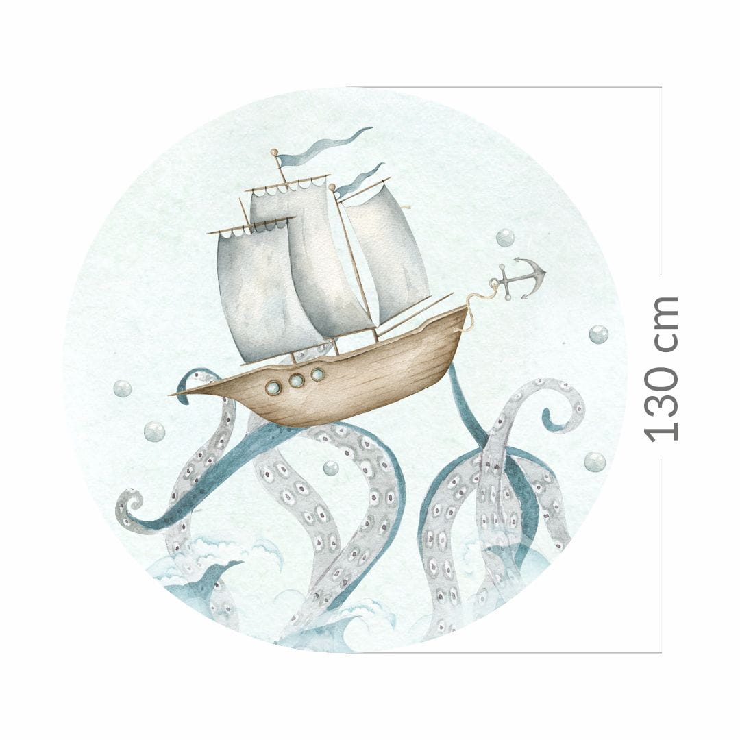 Koło z tapety samoprzylepnej z motywem statku to idealna dekoracja do pokoju dziecięcego, która świetnie prezentuje się zarówno solo jak i w towarzystwie innych produktów z kolekcji Głębia Oceanu. Zapraszamy do przygody na dalekich wodach – wskakuj na statek i wyruszaj na morską ekspedycję! Uważaj na piratów, którzy mogą czyhać na Twojej drodze!