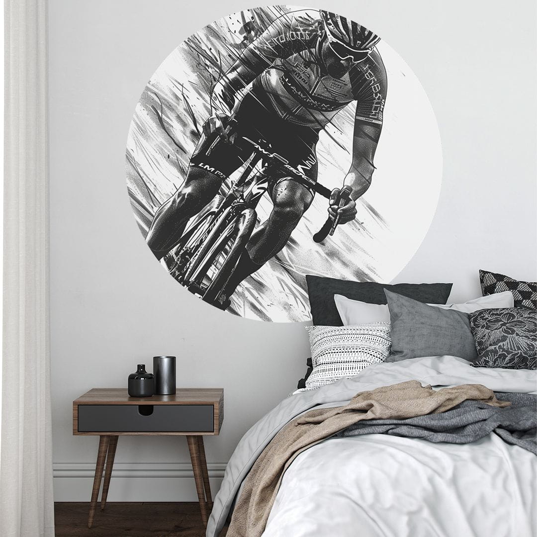 Koło z tapety samoprzylepnej z motywem sportu to świetny wybór do pokoju nastolatka, zwłaszcza dla miłośników kolarstwa. Idealnie sprawdzi się również jako dekoracja sypialni! Jej dynamiczny design doda wnętrzu sportowego charakteru i nowoczesnego wyglądu.