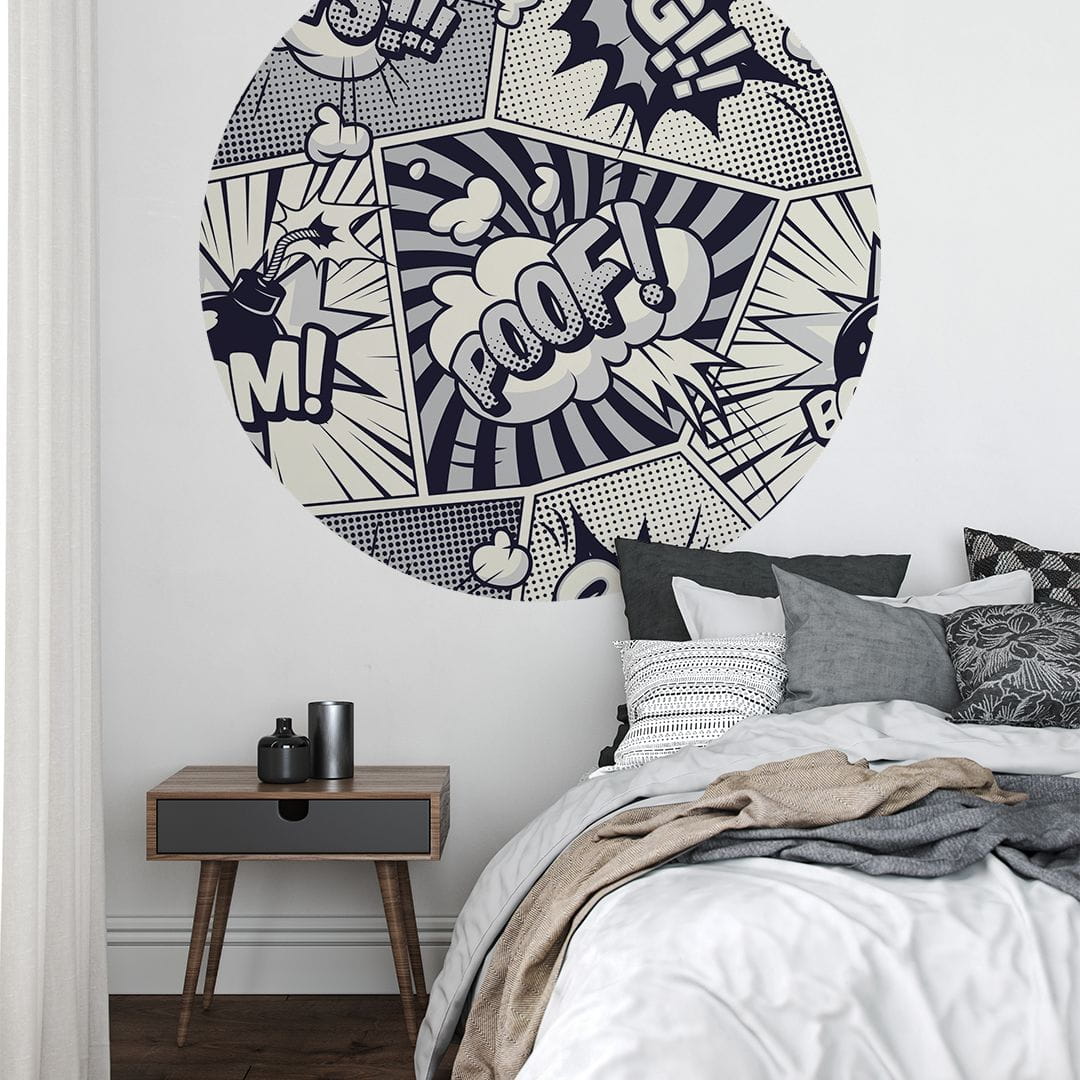 Koło z tapety samoprzylepnej z motywem komiksu to świetny wybór do pokoju młodszych i starszych dzieci oraz sypialni nastolatka. Jej dynamiczny design doda charakteru i ożywi każde wnętrze.