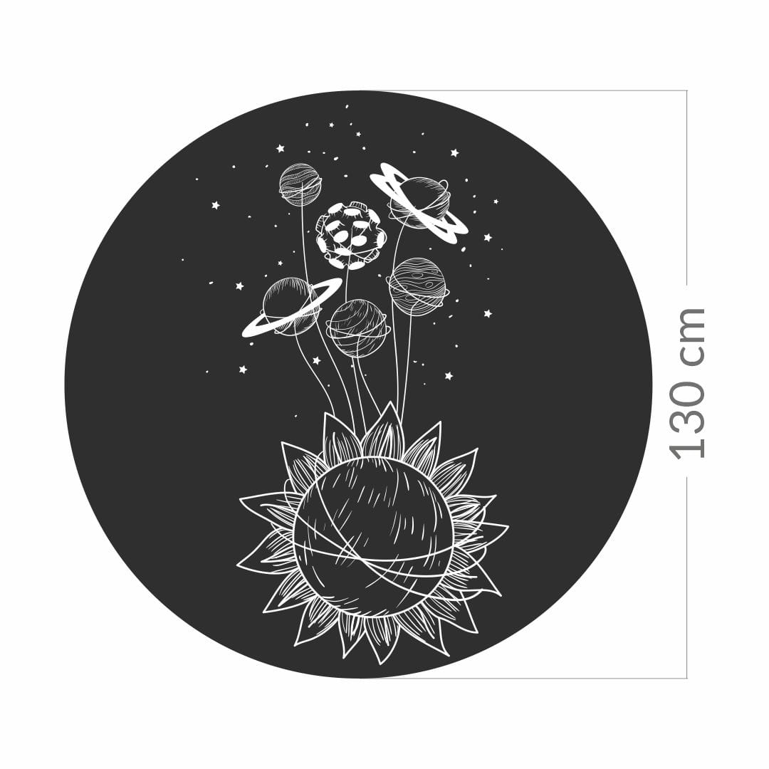 Koło z tapety samoprzylepnej z motywem kosmosu to stylowa dekoracja pasująca do każdego wnętrza, od pokoju dziecka po salon. Jej nowoczesny design nada przestrzeni elegancki, a zarazem kosmiczny klimat.