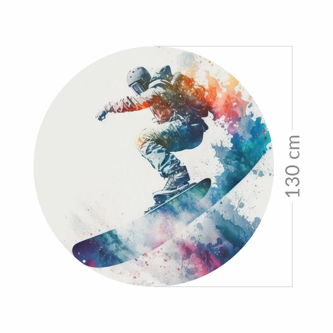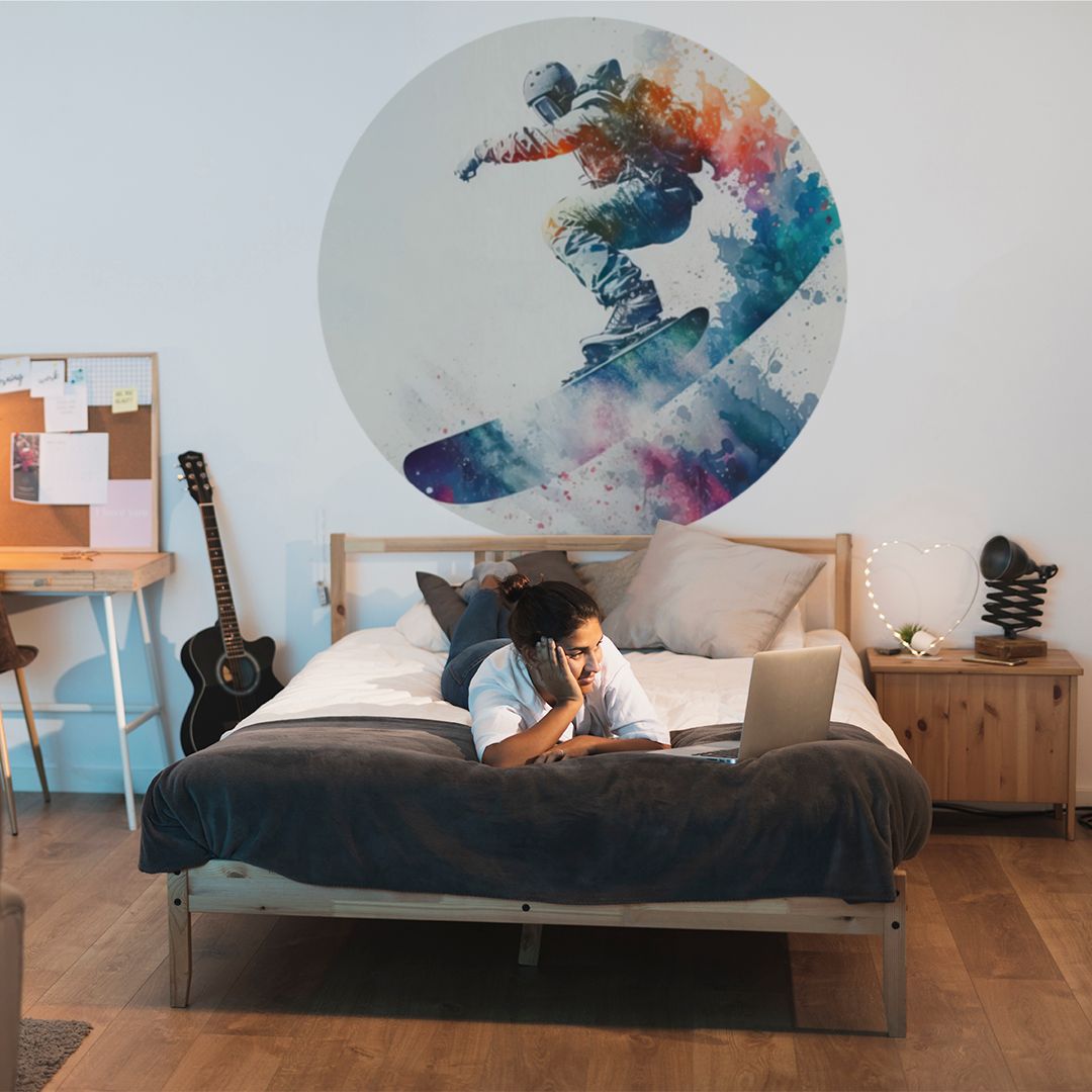 Koło z tapety samoprzylepnej z motywem sportu to świetny wybór do pokoju nastolatka, zwłaszcza dla miłośników snowboardu. Jej dynamiczny design doda wnętrzu sportowego charakteru i nowoczesnego wyglądu.