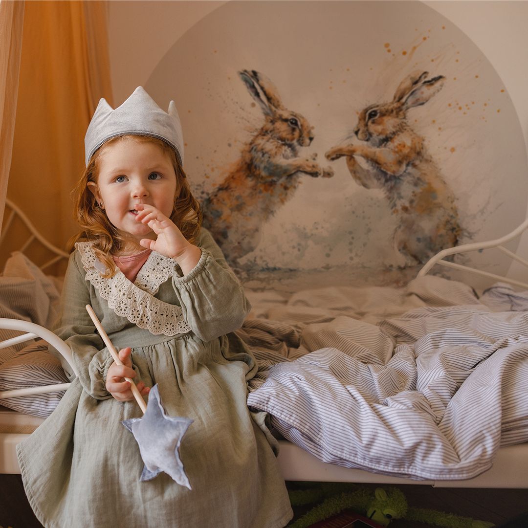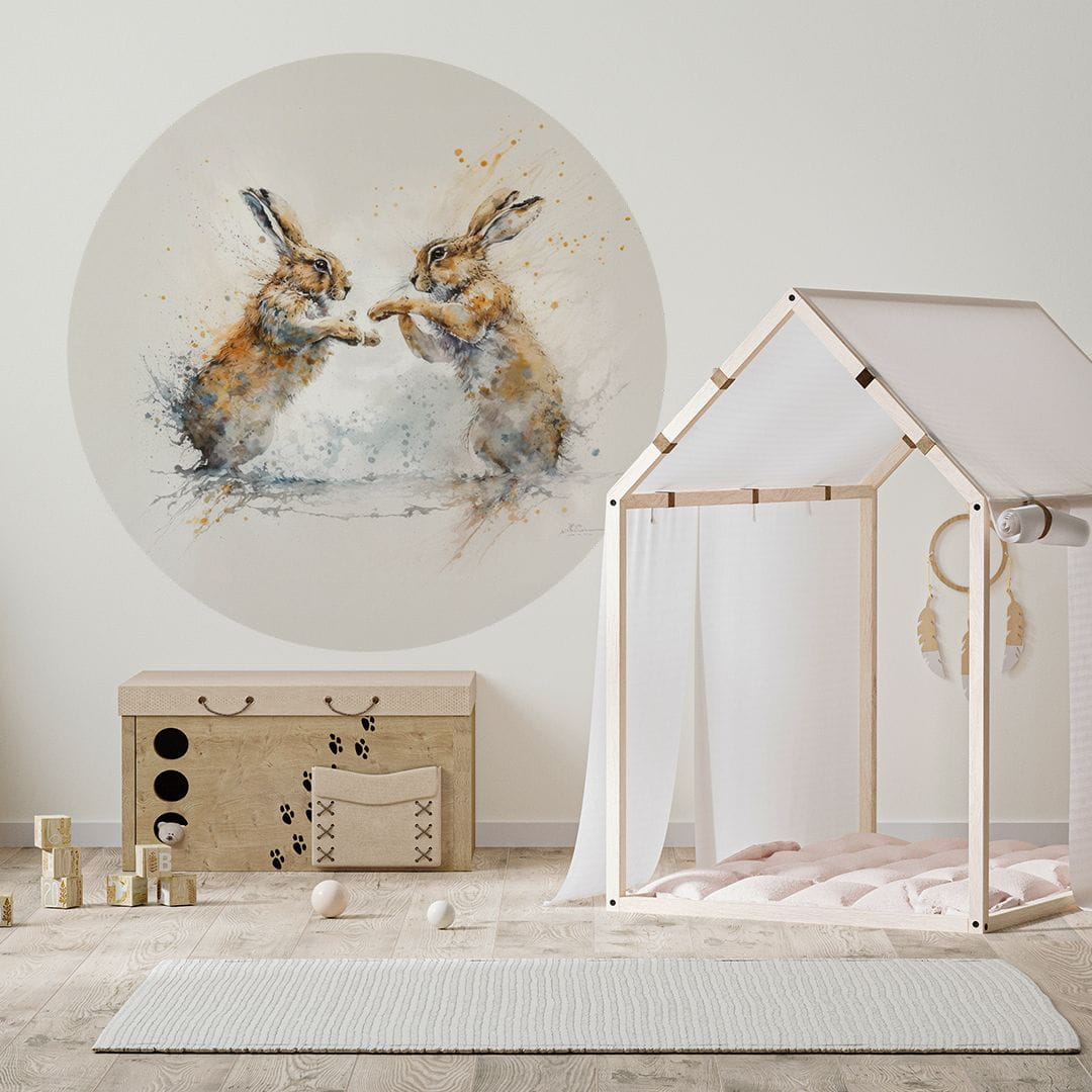 Koło z tapety samoprzylepnej z motywem motywem zajączków to idealna dekoracja do pokoju dziecięcego, która świetnie prezentuje się zarówno solo jak i w towarzystwie innych produktów. Zajączki w stylu watercolor na beżowym tle dodadzą ciepła i przytulności do pokoju dziecięcego. Idealne do stworzenia spokojnej i pełnej fantazji przestrzeni dla Twojej pociechy.
