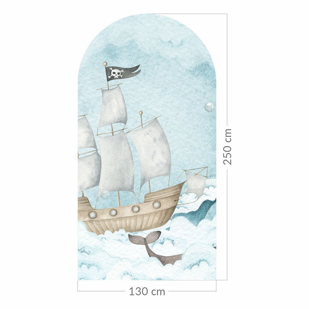 Łuk z tapety samoprzylepnej z motywem statku to idealna dekoracja do pokoju dziecięcego, która świetnie prezentuje się zarówno solo jak i w towarzystwie innych produktów z kolekcji Głębia Oceanu. Zapraszamy do przygody na dalekich wodach – wskakuj na statek i wyruszaj na morską ekspedycję! Uważaj na piratów, którzy mogą czyhać na Twojej drodze!