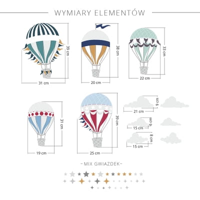 Kolorowe naklejki na ścianę balony do pokoju chłopca to urzekający wzór, który wprowadzi do pokoju Twojego maluszka bajkowy nastrój. To wspaniały pomysł na podniebną przygodę w zaciszu domowym :)
