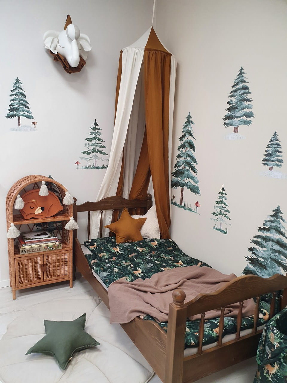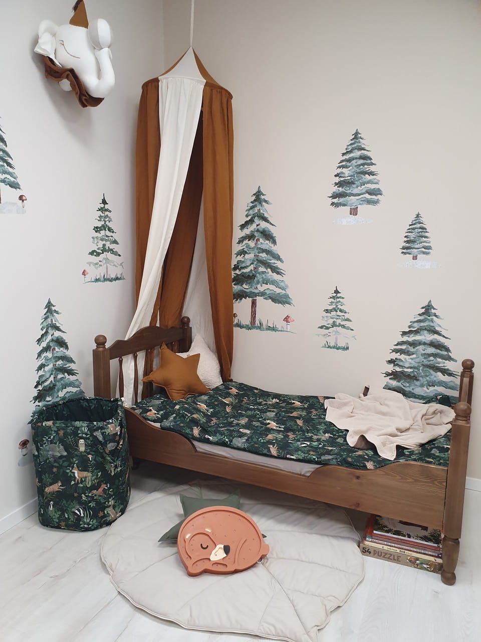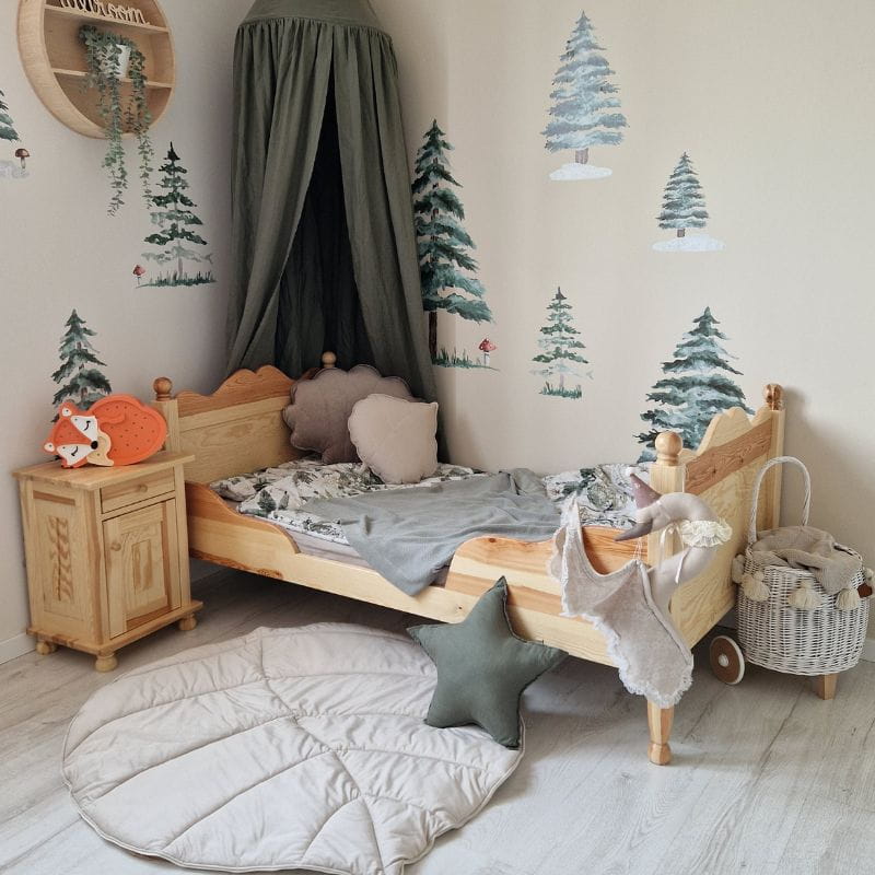 Drukowana naklejka na ścianę do pokoju dziecięcego wycinana z folii matowej to idealny dodatek do pokoju dziecka z leśnym motywem.