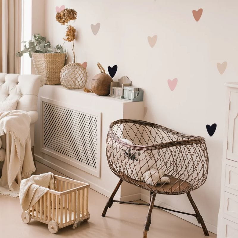 Naklejki na ścianę Serca w beżowej tonacji to nie tylko niskobudżetowy projekt, ale również oryginalny sposób na widoczną zmianę wizerunkową pokoju dziecka.