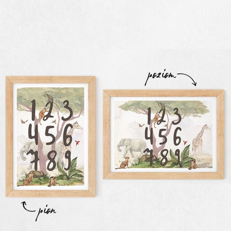 Plakat na ścianę Cyfry Safari - idealna ozdoba pokoju dziecka