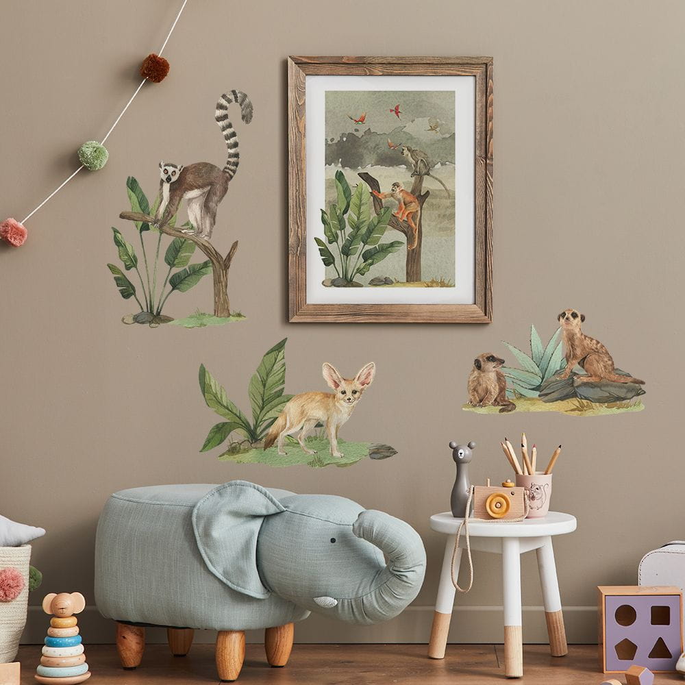 Plakat na ścianę Małpy wyróżnia się niepowtarzalnym wzorem, który idealnie pasuje zarówno jako samodzielna dekoracja, jak i doskonały dodatek do produktów z Kolekcji Safari.