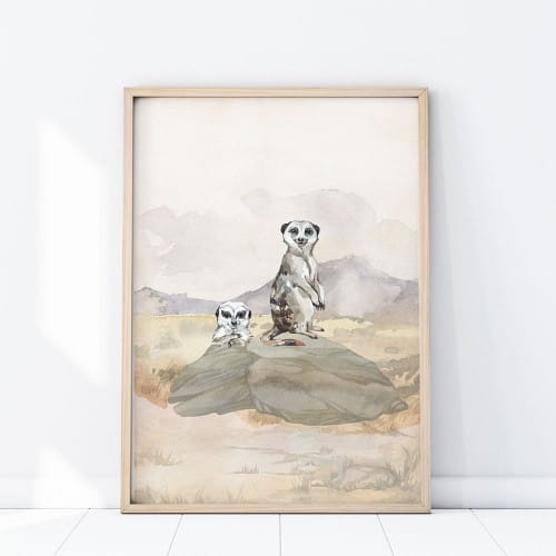 Plakat na ścianę Surykatki wyróżnia się oryginalnym designem. Idealnie pasuje zarówno jako samodzielna dekoracja, jak i doskonały dodatek do produktów z Kolekcji Safari.