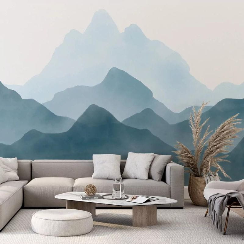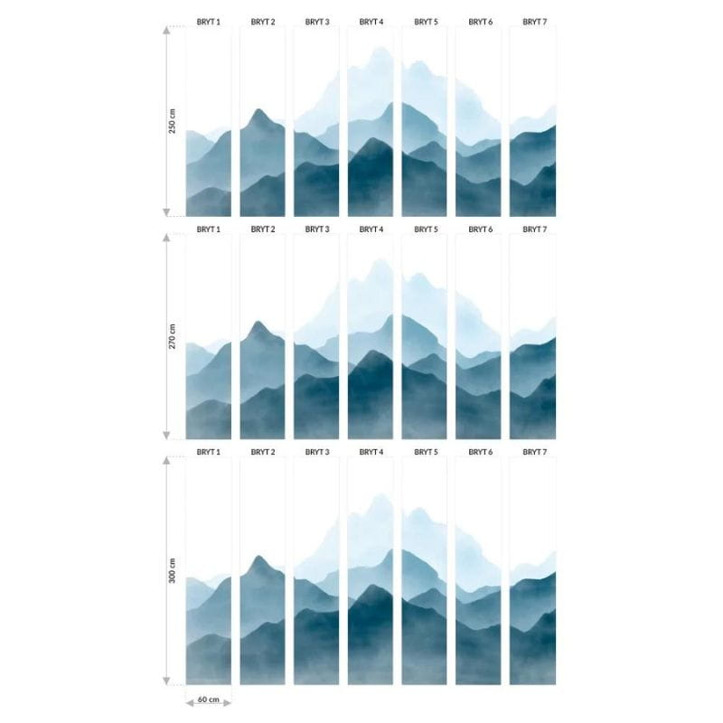 Tapeta Góry to wielowymiarowa aranżacja przedstawiająca górski krajobraz w niebieskich barwach.