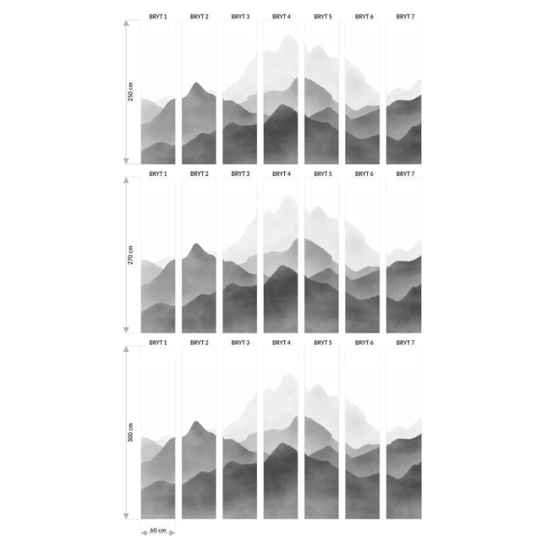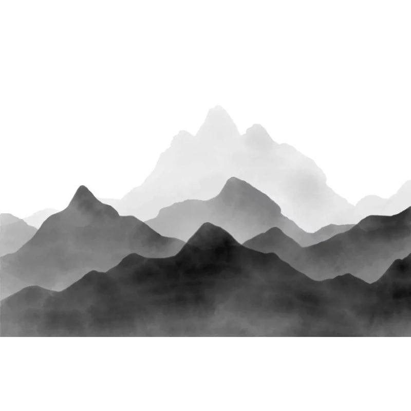 Tapeta Góry to wielowymiarowa aranżacja przedstawiająca górski krajobraz w czarno-białej kolorystyce.