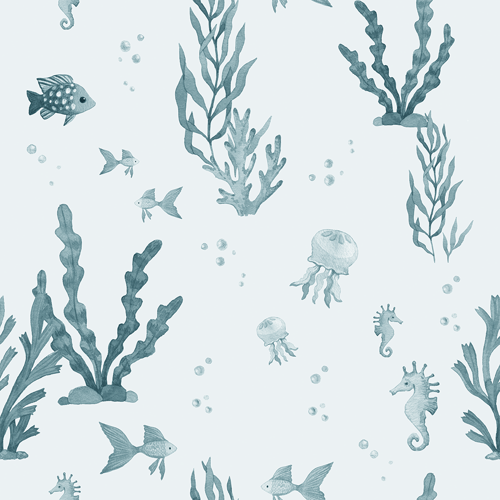 Tapeta z motywem podwodnego królestwa to świetnie rozwiązanie dla wszystkich osób kochających oceany i morski świat. Pod powierzchnią, w głębinach Bajkowej Krainy znajduje się Koralowe Wybrzeże. Podwodny świat odsłania swoje tajemnice. Miks roślinności i zwierząt wodnych w subtelnych, niebieskich odcieniach to piękna propozycja na ścianę do morskiego pokoju dziecka.