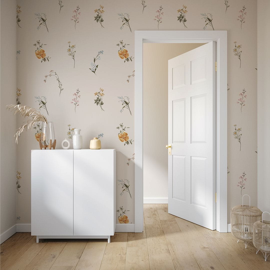 Tapeta winylowa na podkładzie flizelinowym z motywem kwiatów. Polne kwiaty ożywią wnętrze, a stonowane beżowe tło doda klasy i elegancji. Daj się oczarować pięknem natury i stwórz niepowtarzalną atmosferę w swoim domu!