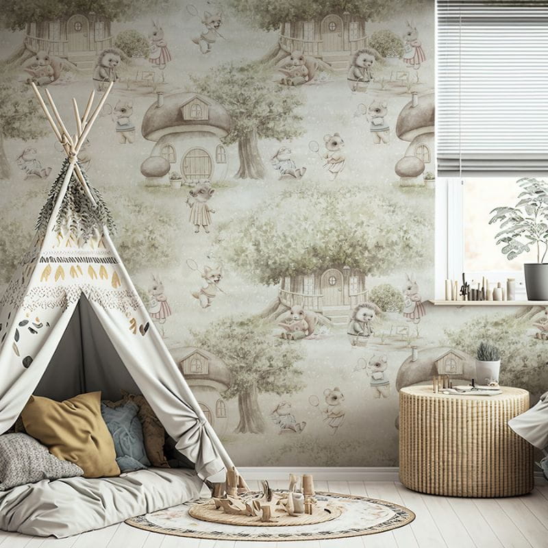 Stwórz swojemu dziecku magiczny pokój i przenieś je do leśnej krainy, gdzie panuje sielski klimat. Mieszkańcy lasu zbierają grzyby, łapią motyle i grają w badmintona. A to wszystko w bujnej zieleni lasu, wśród leśnych chatek. To piękna scenka, która będzie rozwijała dziecięcą wyobraźnię.