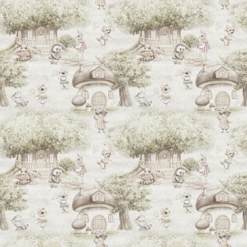 Stwórz swojemu dziecku magiczny pokój i przenieś je do leśnej krainy, gdzie panuje sielski klimat. Mieszkańcy lasu zbierają grzyby, łapią motyle i grają w badmintona. A to wszystko w bujnej zieleni lasu, wśród leśnych chatek. To piękna scenka, która będzie rozwijała dziecięcą wyobraźnię.