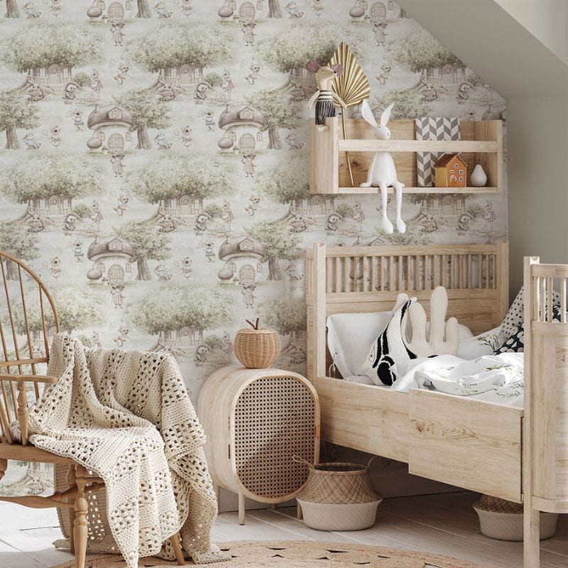 Tapeta Opowieści z Leśnej Chaty sprawdzi się idealnie w pokoju niemowlaka i przedszkolaka.