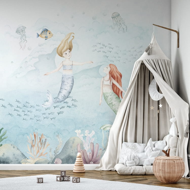 Tapeta dziecięca Syreny - magia oceanu w pokoju dziewczęcym